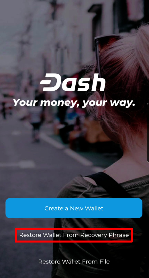 Restoring a 12-word recovery phrase using Dash wallet for Android