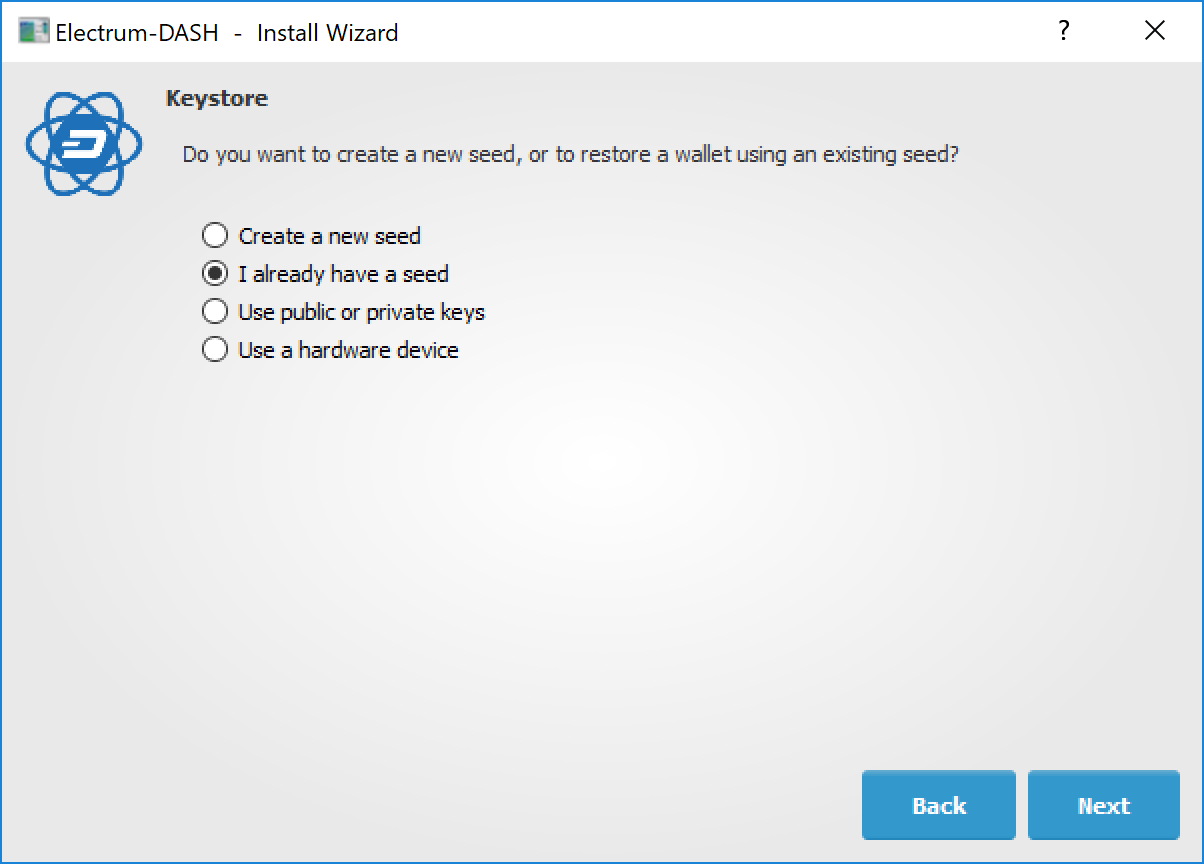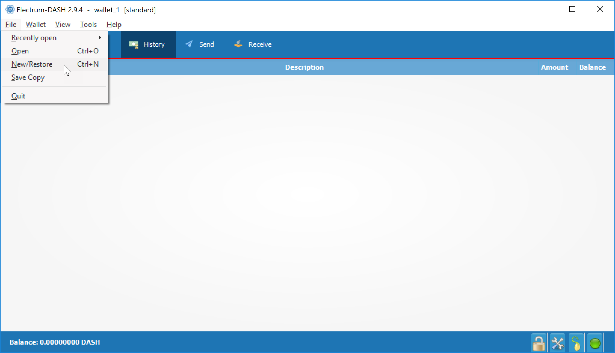 Dash Electrum should now detect your Dash iOS balance and you should have complete access to your funds. The seed phrase won’t be available in Dash Electrum , so you will just need to follow the steps above again if you want to restore this wallet from the recovery phrase again. It is recommended to send your funds to a new Dash Electrum wallet instead and follow standard backup procedures.